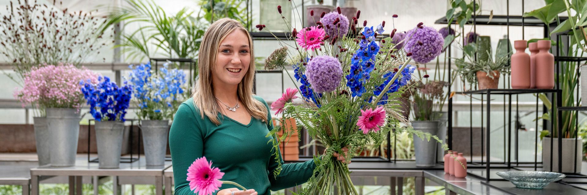 Tijdens de opleiding leer je hoe je etalages tot blikvangers omtovert en hoe je stralende productfoto’s maakt. Je gaat aan de slag met het ontwerp van een groenplan voor de inrichting van een ruimte, of je creëert toffe bloemwerken voor de aankleding van een evenement. Ook maak jij dat gezellige boeket voor thuis. Eigenlijk zorg jij er dus voor dat de wereld een stukje kleurrijker wordt, en daarbij houd je rekening met duurzaamheid, natuur én mens.